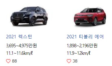 스크롤을 아래로 내리면 다른 차량도 볼 수 있으니 원하는 차량을 선택해서 보시기 바랍니다.
