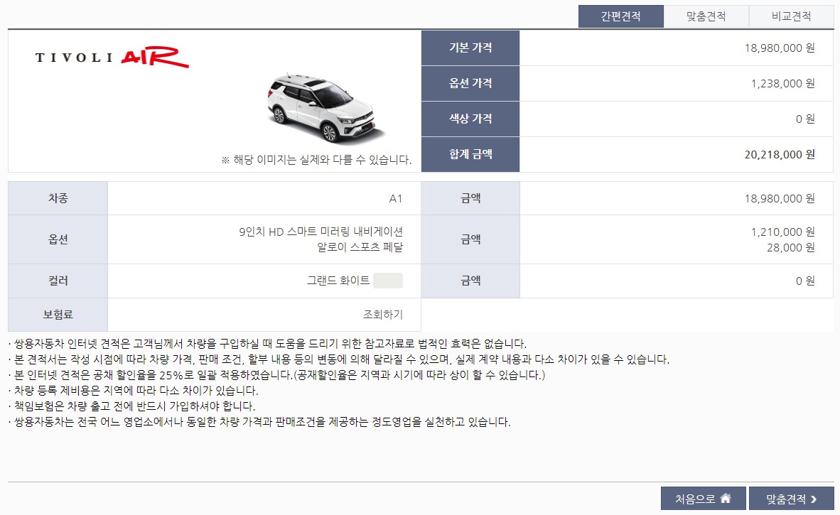 1. 쌍용자동차 신차 가격표 : 온라인 견적으로 알아보기