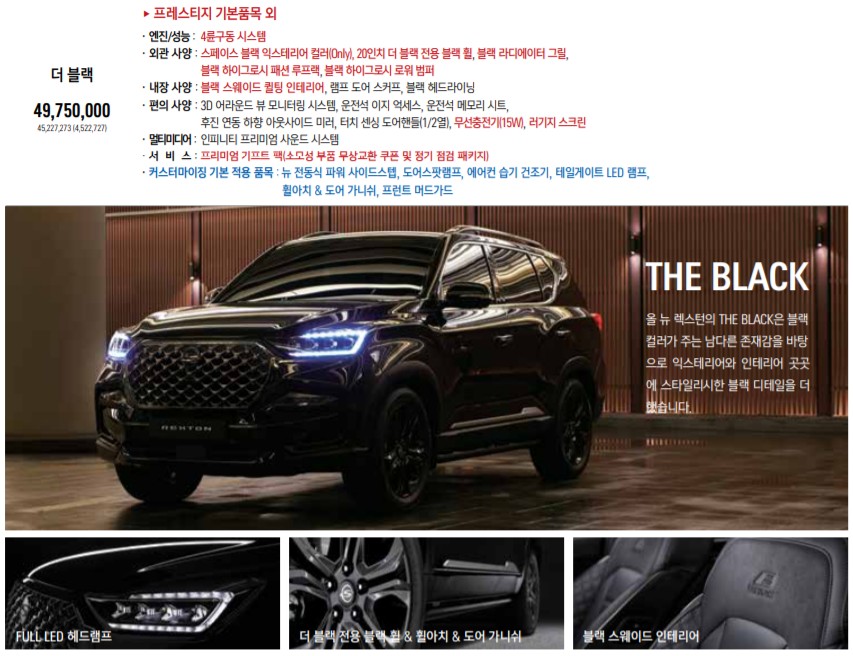 프레스티지 모델 이에 더 블랙이라는 모델도 있는데요, 컬러가 주는 남다른 존재감을 바탕으로 스타일리쉬한 블랙 디테일을 더한 프리미엄 차량입니다.