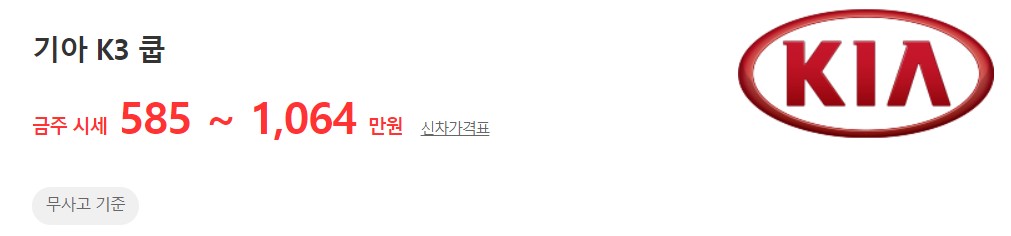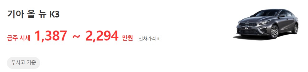 아래에서는 모델과 연식별로 K3 중고차 가격 시세를 확인해 보겠습니다.