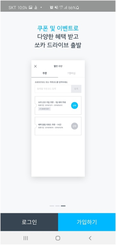 가장 먼저 해야 할 일이 앱을 통해 자동차 운전면허증과 결제카드를 등록하는 것입니다.