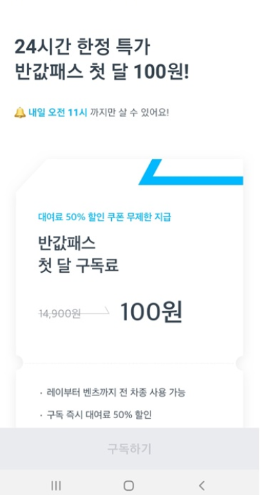 요금제 특이사항으로는 최소 30분부터 10분 단위로 예약이 가능하다는 점이구요, 대여요금은 탄력요금제로 운영된다고 합니다.
