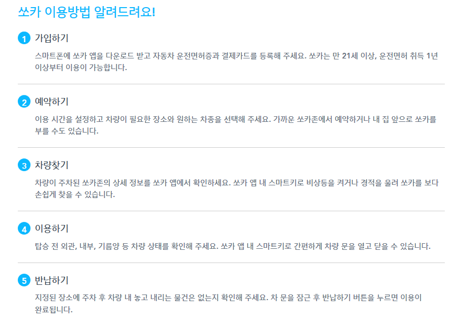 위 목차의 순서대로 이야기를 풀어갈 예정이며, 끝까지 읽으시면 카 셰어 링 업체 중 하나인 쏘카를 손쉽게 이용하실 수 있습니다.